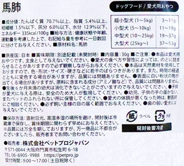 - ペットプロ 国産おやつ 無添加馬肺 30g