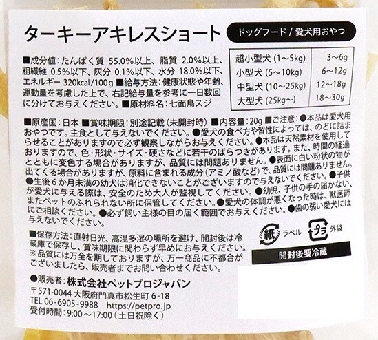 - ペットプロ 国産おやつ 無添加ターキーアキレス ショート 20g
