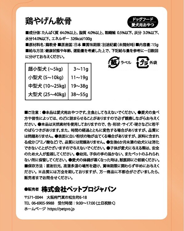 - ペットプロ こくさんおやつ 鶏やげん軟骨 15g