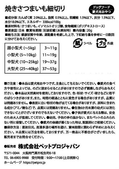 - ペットプロ こくさんおやつ 焼きさつまいも細切り 20g