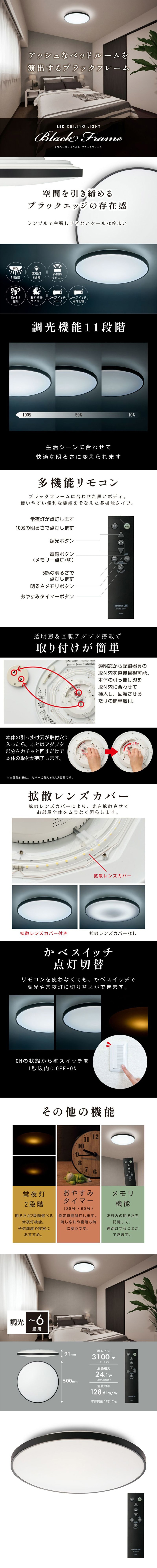 【~6畳/調光11段階】ドウシシャ/LEDシーリングライト ブラックフレーム|拡散レンズカバー採用で、光を拡散させてお部屋全体をムラなく照らす!省エネで使いやすい!空間を引き締めるブラックエッジ!