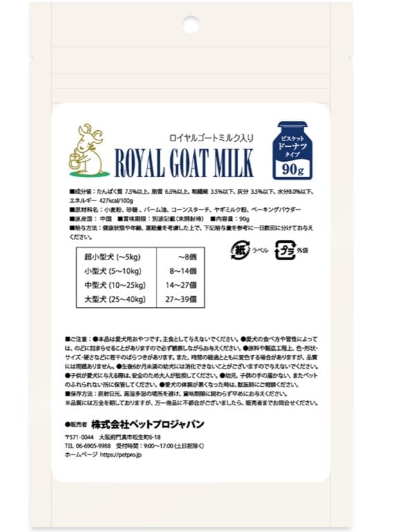 - ペットプロ ロイヤルゴートミルク入りビスケット ドーナツタイプ 90g