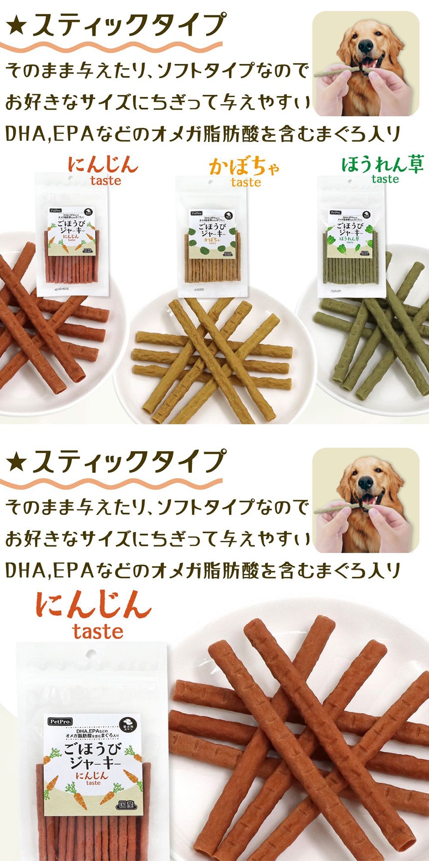 [48個]ペットプロジャパン ペットプロ ごほうびジャーキー にんじんtaste 100g | DHA、EPAなどのオメガ脂肪酸を含むまぐろ入り