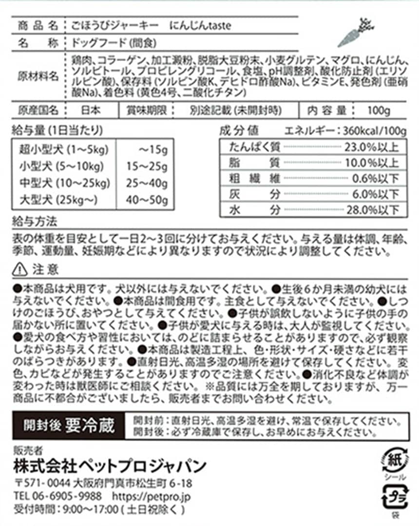 - ペットプロ ごほうびジャーキー にんじんtaste 100g