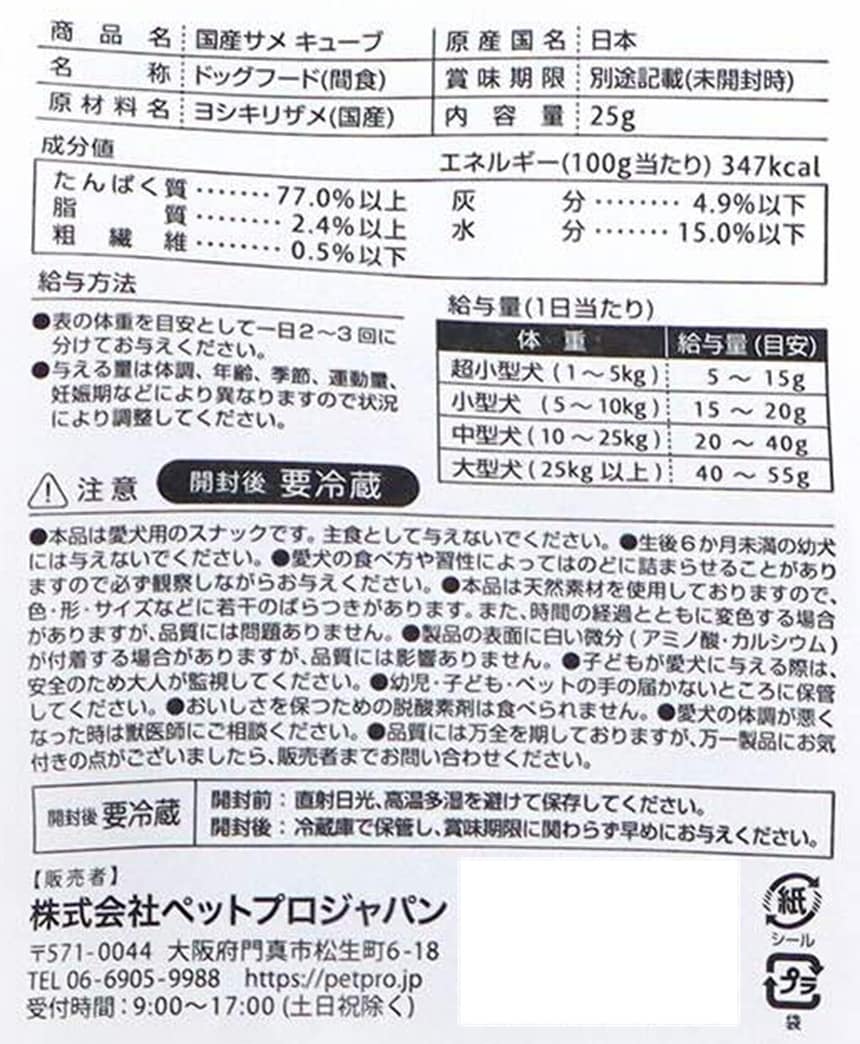 [10個]ペットプロジャパン HappyDays 国産サメキューブ 犬用 25g | 国産サメを100%使用