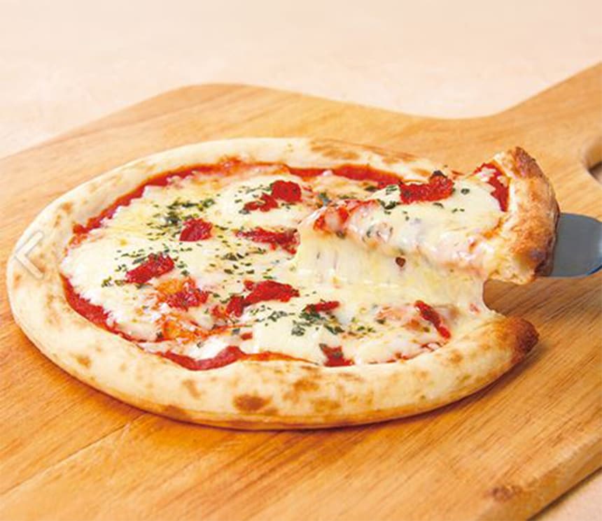自然な焼き色で外はカリっと中はもちっとした食感のナポリ風クラストを使用しイタリアン産モッツァレラをトッピングしたピザ