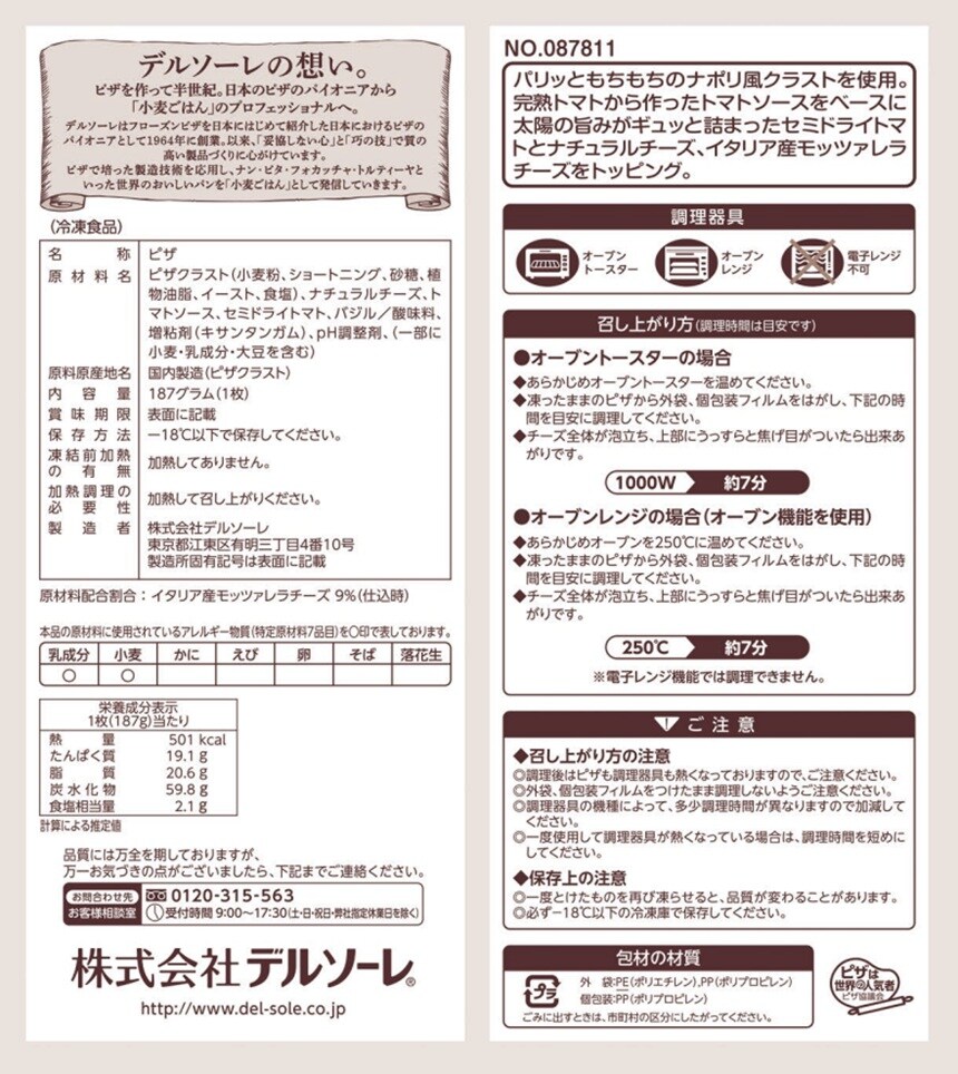 - [冷凍]【10枚】ナポリ風 マルゲリータピザ 187g