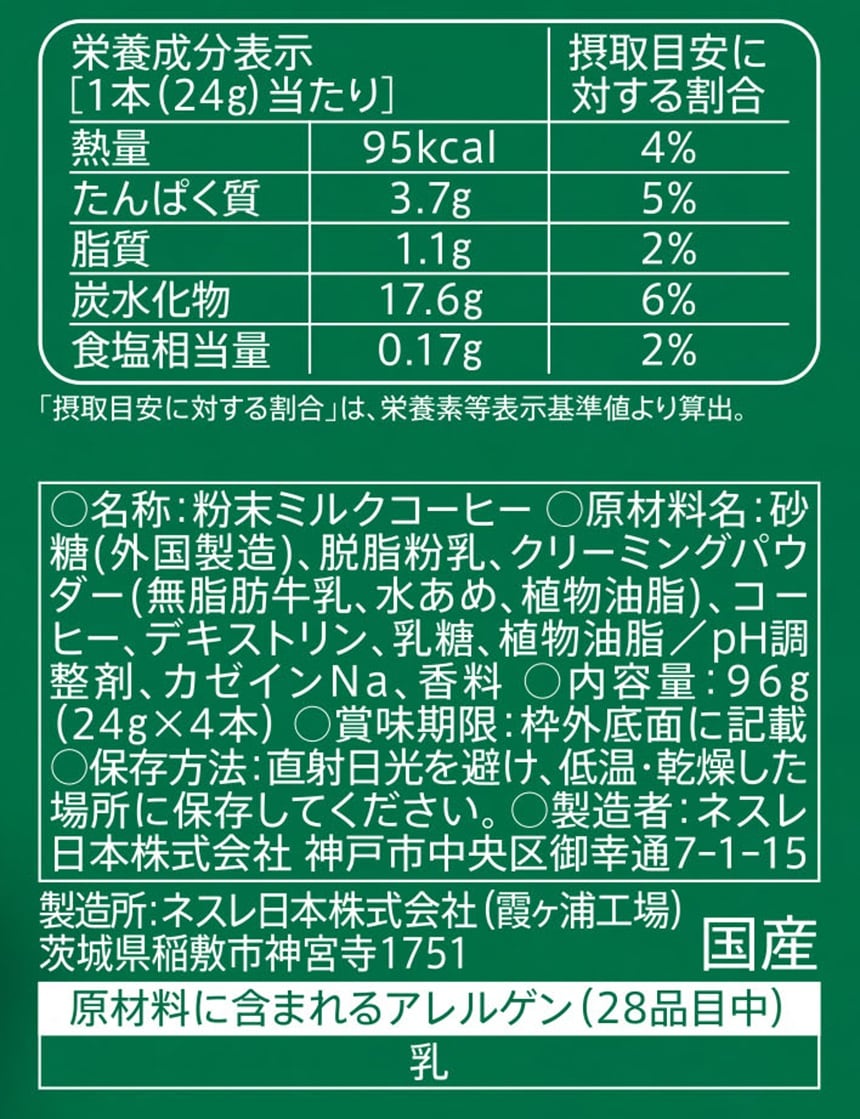 厳選した100%アラビカ豆のコーヒーとミルクパウダーを使用し、ミルクリッチな味わいを実現。