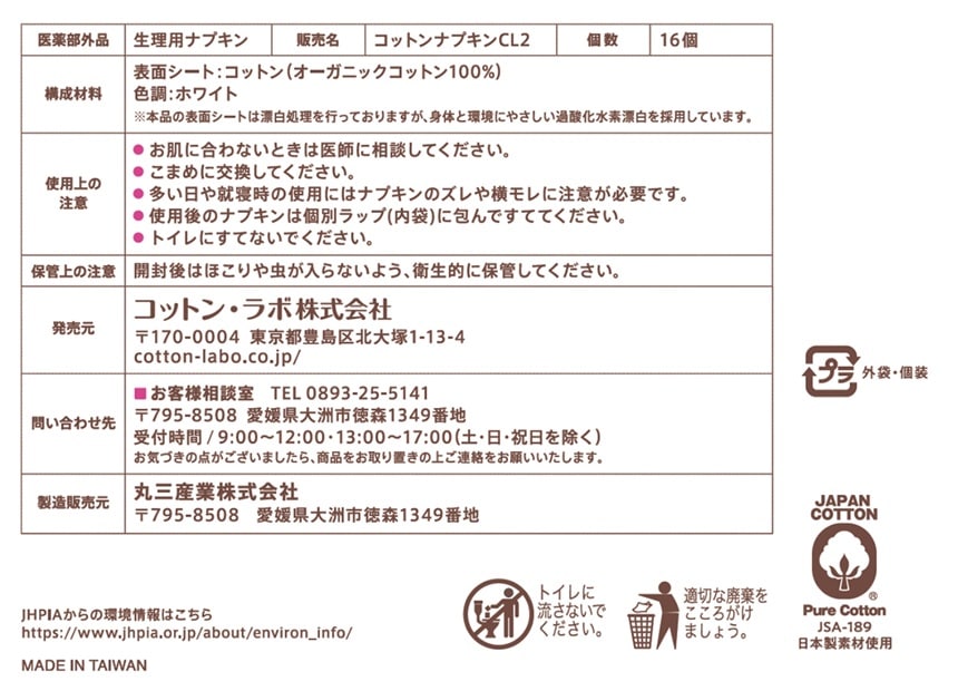 ●使用後のナプキンは個別ラップ(内袋)に包んですててください。