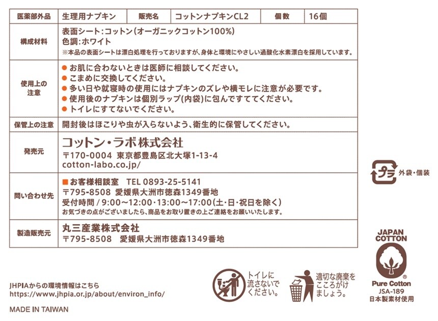 ●使用後のナプキンは個別ラップ(内袋)に包んですててください。