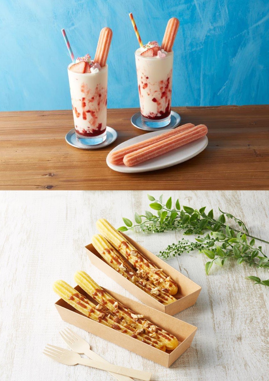 いちごソース入りのハーフサイズチュロス。焼くだけで食べられる簡便なハンドリング。