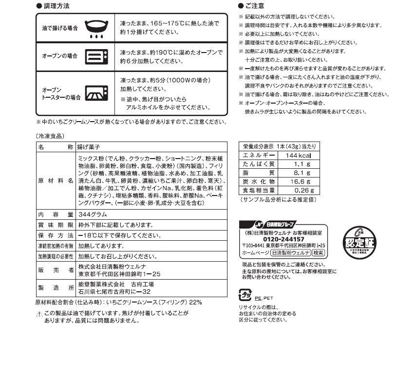 - ・ハーフチュロス いちごクリームソース入り 344g(8本)×2袋