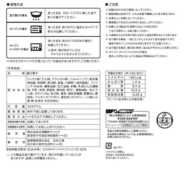 ・ハーフチュロス カスタードソース入り 344g(8本)×2袋