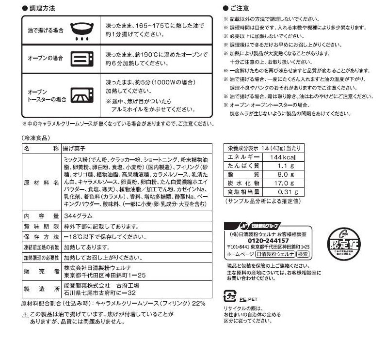 - [冷凍]【3種計6袋】日清製粉ウェルナ 業務用 ハーフチュロス(キャラメルソース入り/いちごクリームソース入り/カスタードソース入り)