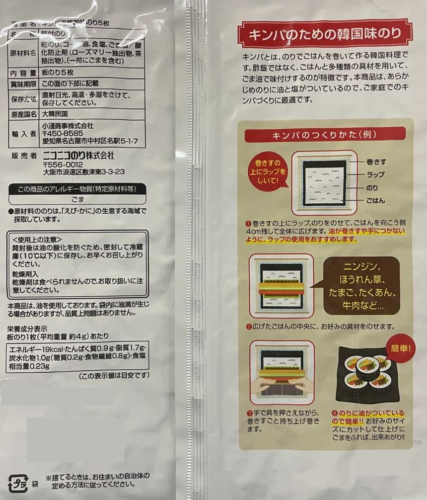人気のキンパがご家庭で簡単に作れるキンパのための韓国味のりです。