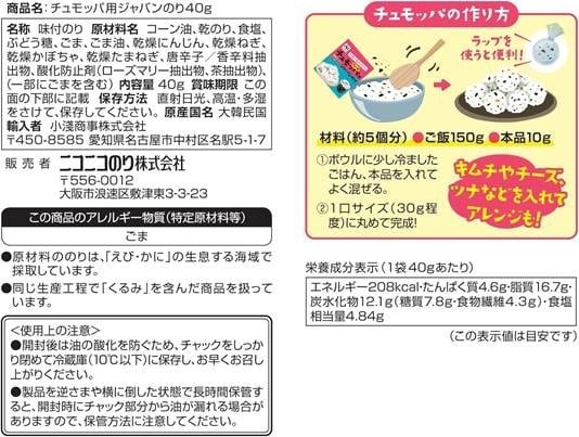 ご飯に混ぜるだけで「チュモッパ」が簡単に作ることができる、チュモッパ用ジャバンのりです。