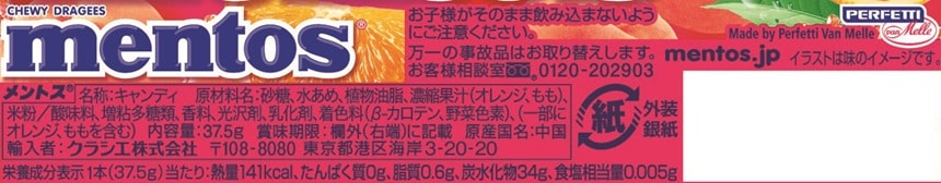 メントスならではの独特の食感と、ピーチの甘さとオレンジのスッキリ感のバランスがクセになり、いつでもどこでも誰とでも楽しめます。