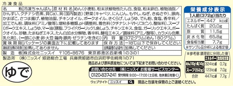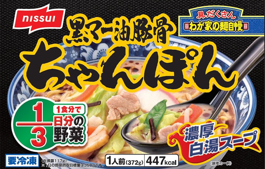 [冷凍]ニッスイ 黒マー油豚骨 ちゃんぽん 1人前(372g)×6個 | わが家の麺自慢黒マー油豚骨 ちゃんぽん豚骨スープに黒マー油を効かせた濃厚な味わいのちゃんぽんです。