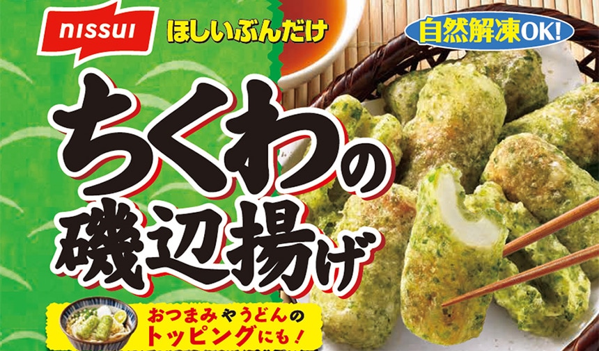 お弁当おつまみうどんのトッピングにもニッスイのちくわをあおさの風味豊かな衣でサックリ揚げました。