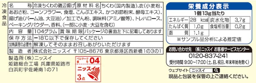 - [冷凍]ニッスイ ちくわの磯辺揚げ 8個入×6袋