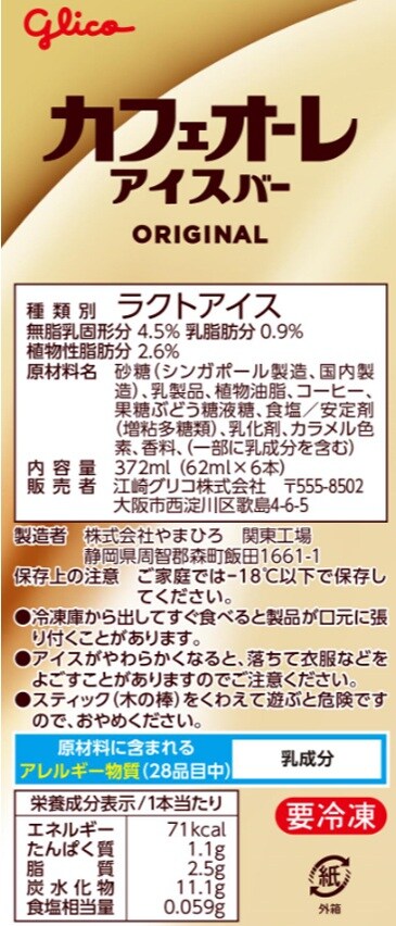 グリコのロングセラー飲料「カフェオーレ」をイメージしたカフェオーレ味のアイスバー。
