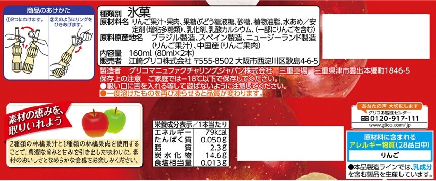 [冷凍]江崎グリコ パピコ 林檎 160ml×24袋 | 2種類の林檎果汁と1種類の林檎果肉を使用することで豊潤な旨みと甘みを引き出した味わいに。