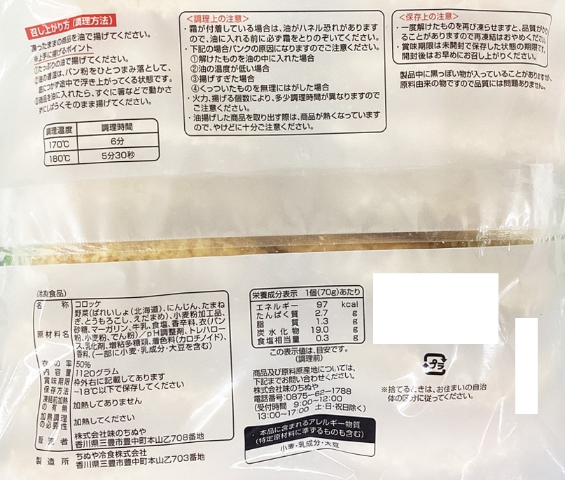 - [冷凍]味のちぬや さくっと!旨じゃがコロッケ(野菜) 1120g(16個入)×4袋