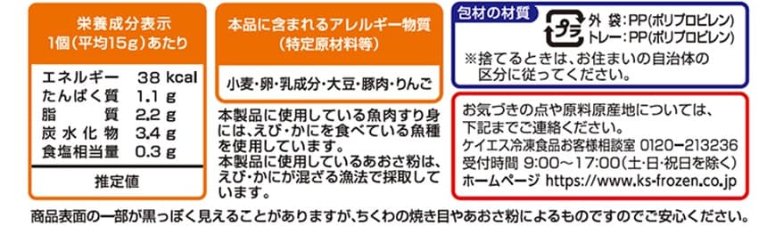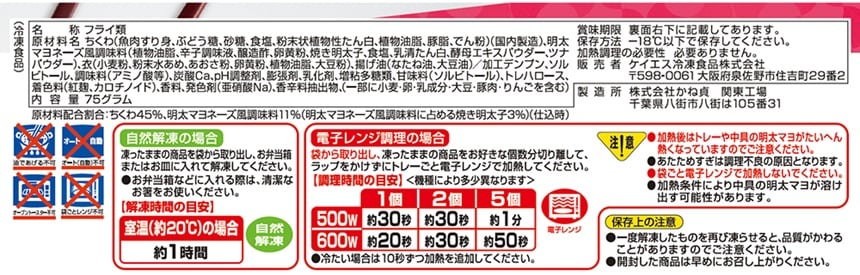 - [冷凍]ケイエス冷凍食品 食卓のやまや明太マヨ使用 ちくわ磯辺揚げ 5個入×6袋