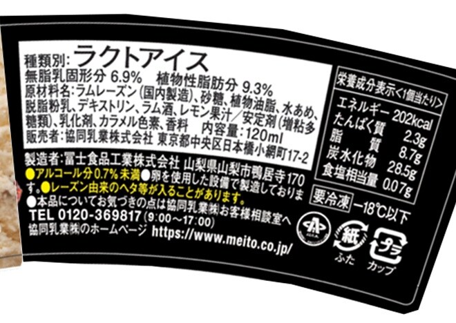 [冷凍]協同乳業 じゅわっとラムレーズン 120ml×24個 | 洋酒と砂糖でじっくり煮込み味わいが染みたホールレーズンを混ぜ込んだラムレーズンいりカップアイス。