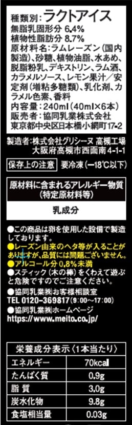 - [冷凍]協同乳業 じゅわっとラムレーズン 6本入×10箱