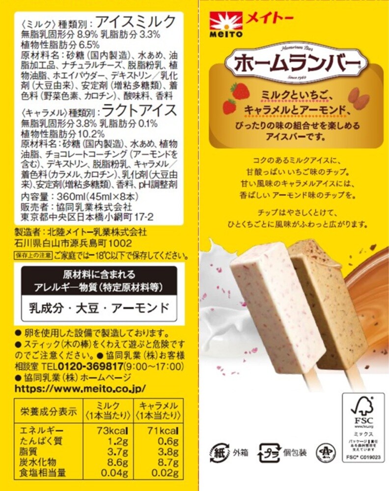 [冷凍]協同乳業 ホームランバー ミルク&キャラメル 8本入×12箱 | 1960年に誕生したホームランバー。