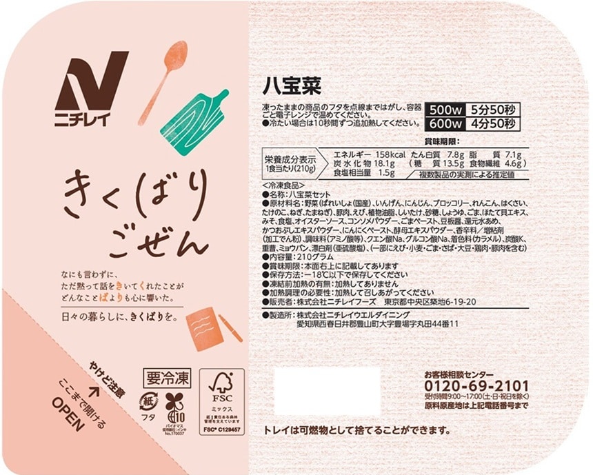 [冷凍]ニチレイフーズ きくばりごぜん 八宝菜 210g×10個 | 1食あたりカロリー300kcal以下、塩分2.0g以下、野菜使用量100g以上の冷凍総菜セットです。