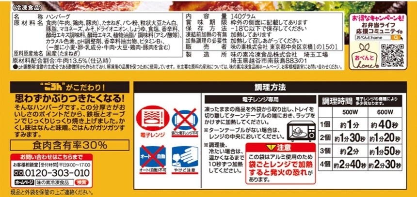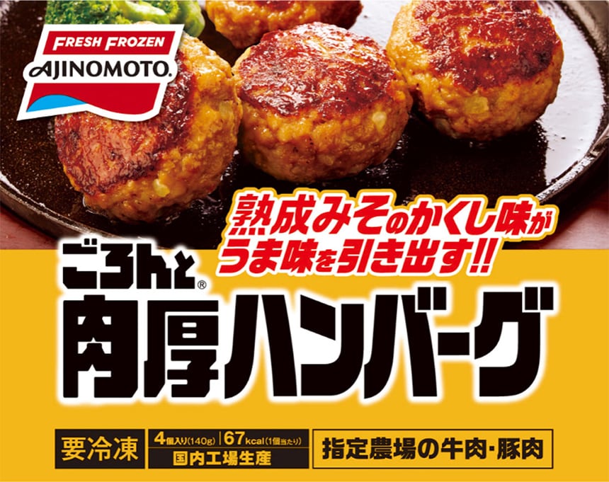 - [冷凍]味の素 ごろんと肉厚ハンバーグ 140g(4個入)×3袋