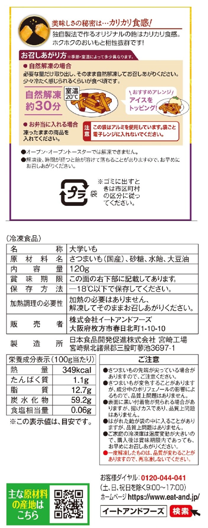 - [冷凍]イートアンドフーズ 大阪王将 黄金の大学いも 120g×5袋