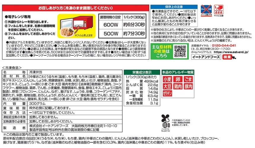 - [冷凍]イートアンドフーズ 大阪王将 楽ラク中華 中華おこわと油淋鶏 1食×12袋