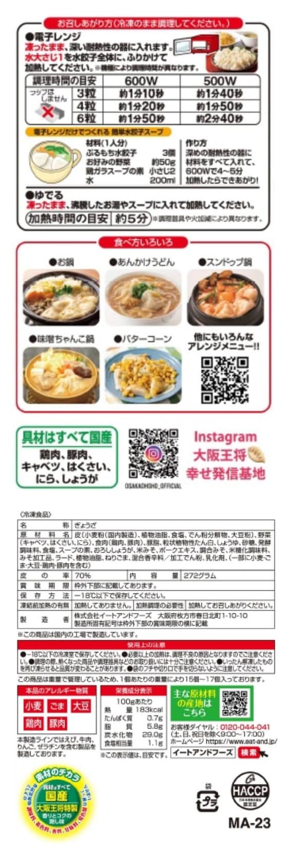 - [冷凍]イートアンドフーズ 大阪王将 ぷるもち水餃子 272g×5袋