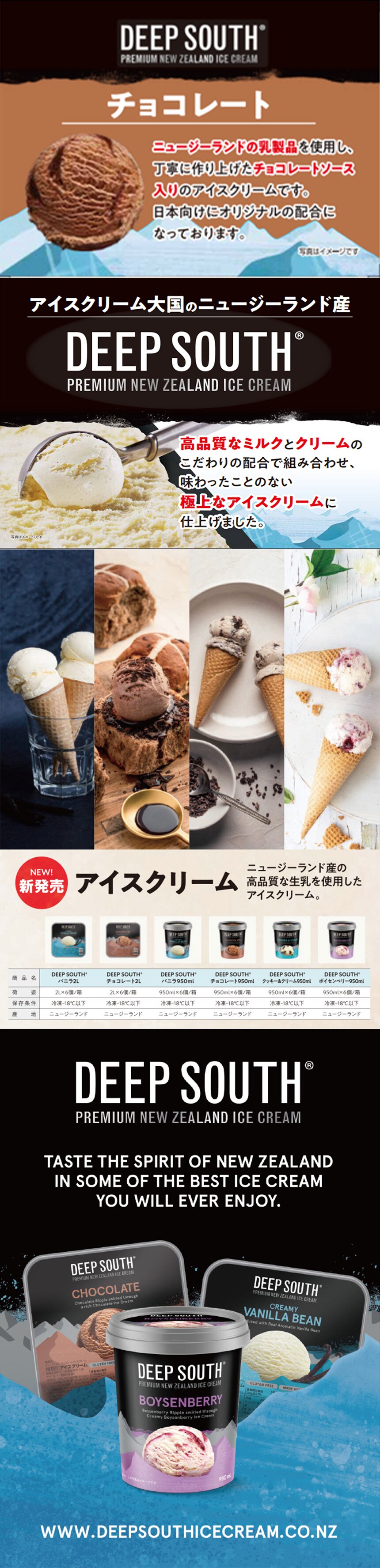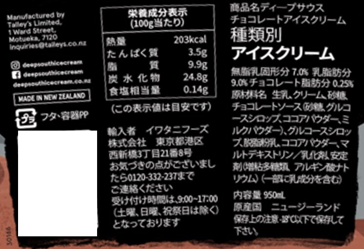 [冷凍]イワタニフーズ DEEP SOUTH チョコレート 950ml×3個 | アイス大国ニュージーランド産の大容量アイスクリーム。