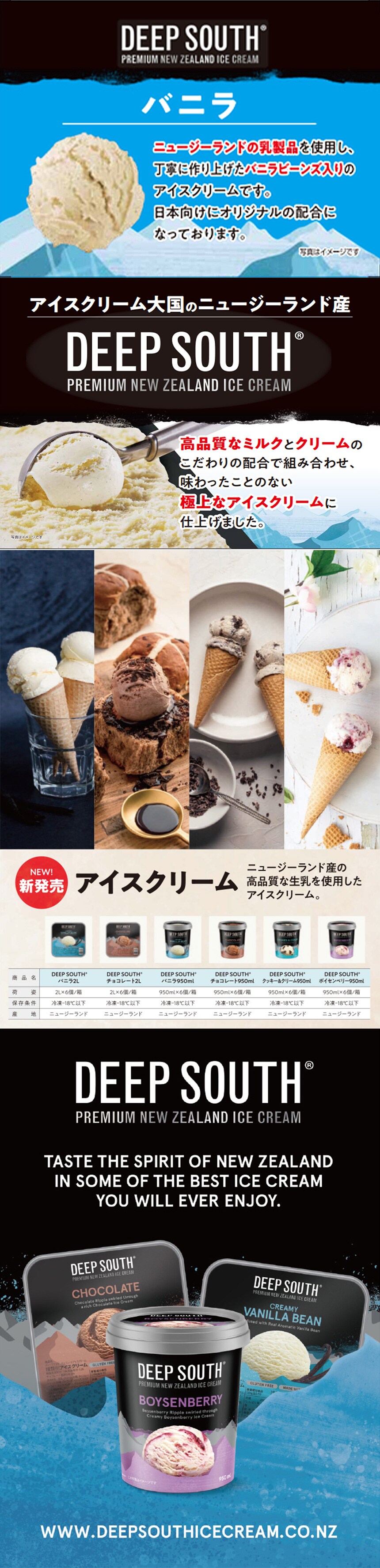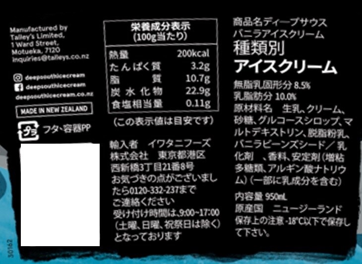 [冷凍]イワタニフーズ DEEP SOUTH バニラ 950ml×3個 | アイス大国ニュージーランド産の大容量アイスクリーム。