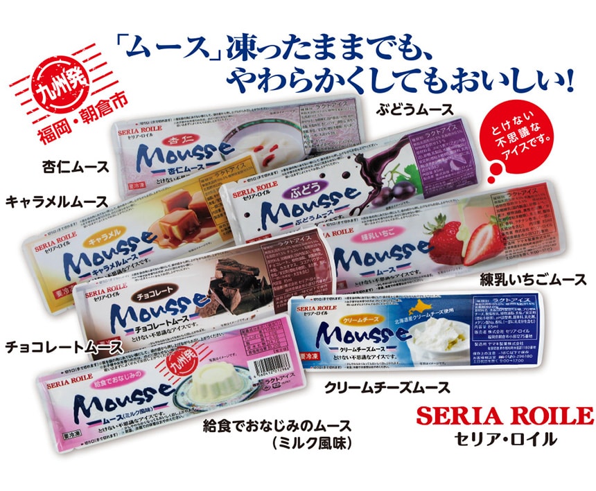 九州の学校給食でおなじみのムースを紅はるかペーストを5%使用した紅はるか味で仕立てました。溶けにくい不思議な食感のアイスです。温度帯によって食感が変化しますので自分の好きな食感を探す楽しみ方もできます。一度溶けたアイスを再び凍結させると食感が変わってしまいますのでおやめください。