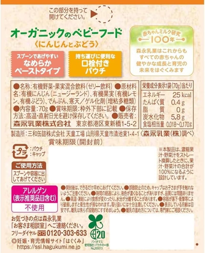 [48個]森永乳業 森永 オーガニックのベビーフード にんじんとぶどう 70g | 離乳初期からずっと!いつでもどこでもすぐあげられる!有機原料のやさしいベビーフード