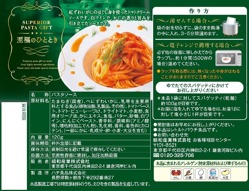 ・紅ずわいがにのトマトクリームソース 120g×5個
