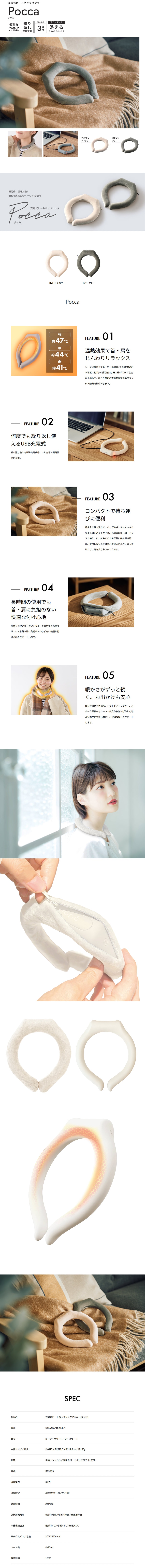 【アイボリー】クワッズ/充電式ヒートネックリング「ポッカ」(温度調整3段階/ふんわり専用カバー付)|暖かさ続くお出かけも安心。毎日の通勤や外出、レジャーなどにも。首元からぽかぽかと心地よい温かさを