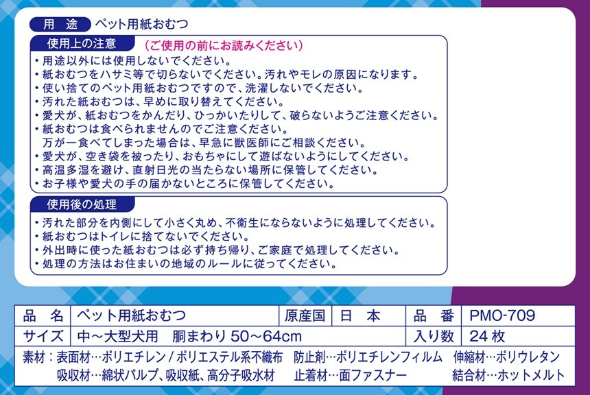 - 男の子のためのマナーおむつ ビッグパック 中~大型犬用 24枚入