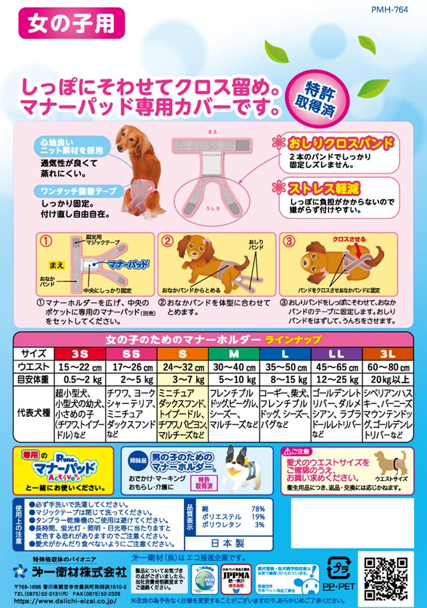 [2個]第一衛材 女の子のためのマナーホルダーActive S | わんちゃんの動きにもピッタリフィット!ズレずに安心!