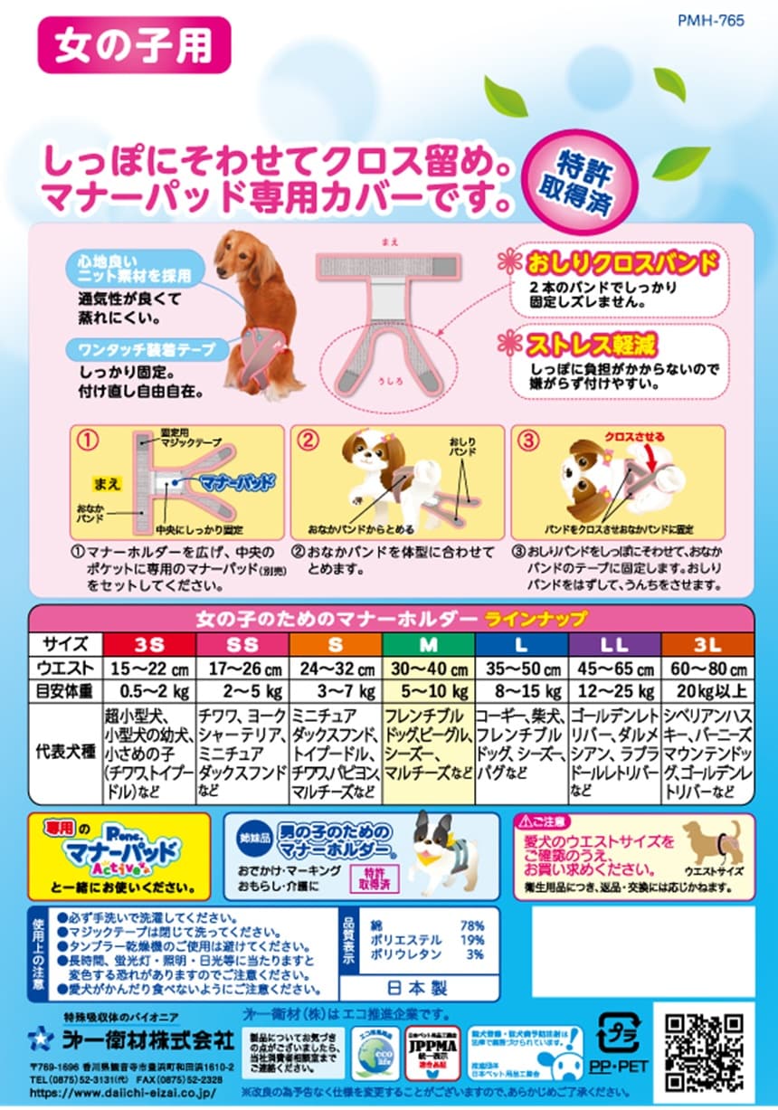 [2個]第一衛材 女の子のためのマナーホルダーActive M | わんちゃんの動きにもピッタリフィット!ズレずに安心!