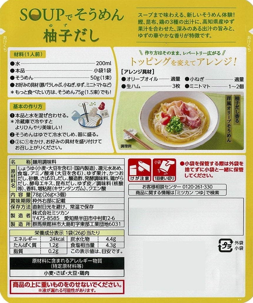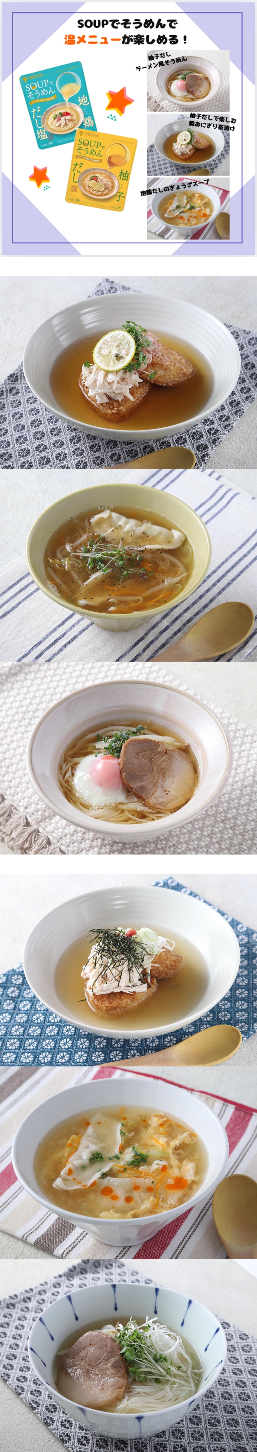 - SOUPでそうめん 柚子だし 78g(26g×3個) / SOUPでそうめん 地鶏だし塩 81g(27g×3個)