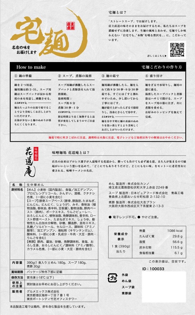 - [冷凍]グルメエックス 宅麺 花道庵 濃厚辛味噌つけめん 1食入×3個