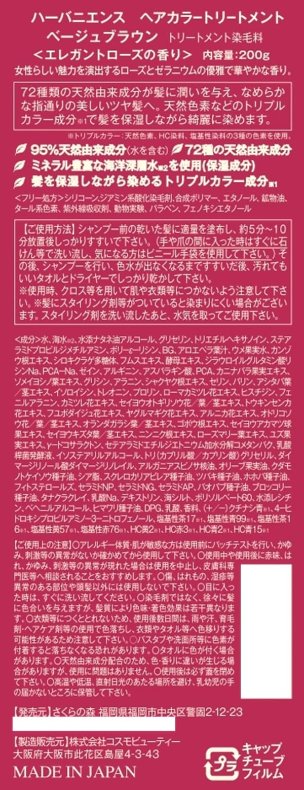 [12個]さくらフォレスト ハーバニエンス ヘアカラートリートメント ベージュブラウン 200g | 気になる白髪を「綺麗に染める」「補修する」、同時に叶える、理想のヘアカラートリートメント。