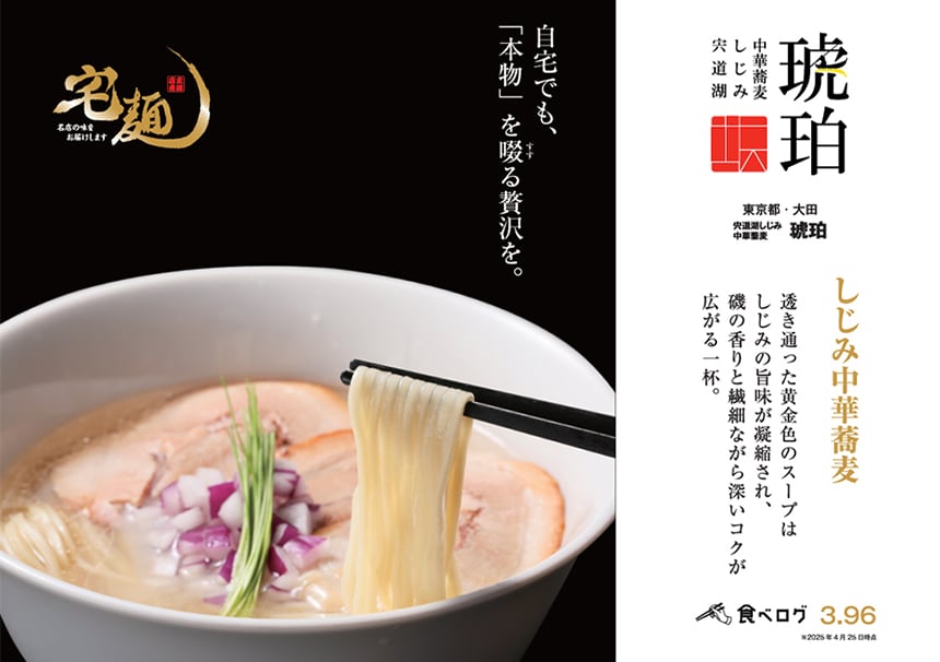 【琥珀とは】2019 年のオープン直後から、ラーメン業界でも話題となり、すぐに有名店へと名を馳せ、2021年のミシュラン ビブグルマンに初掲載。それ以降も多くのラーメン好きが押し寄せ、現在では予約制となるほどに食べるのが難しい人気店舗となっている。