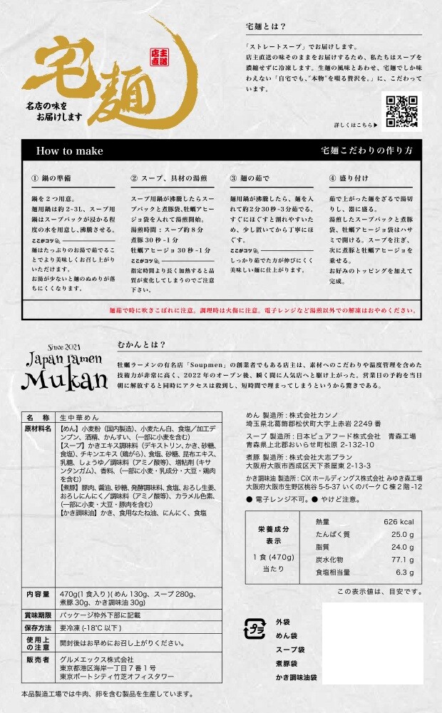 [冷凍]グルメエックス 宅麺 むかん 牡蠣塩ラーメン 1食入×5個 | 彗星の如く現れた人気店。